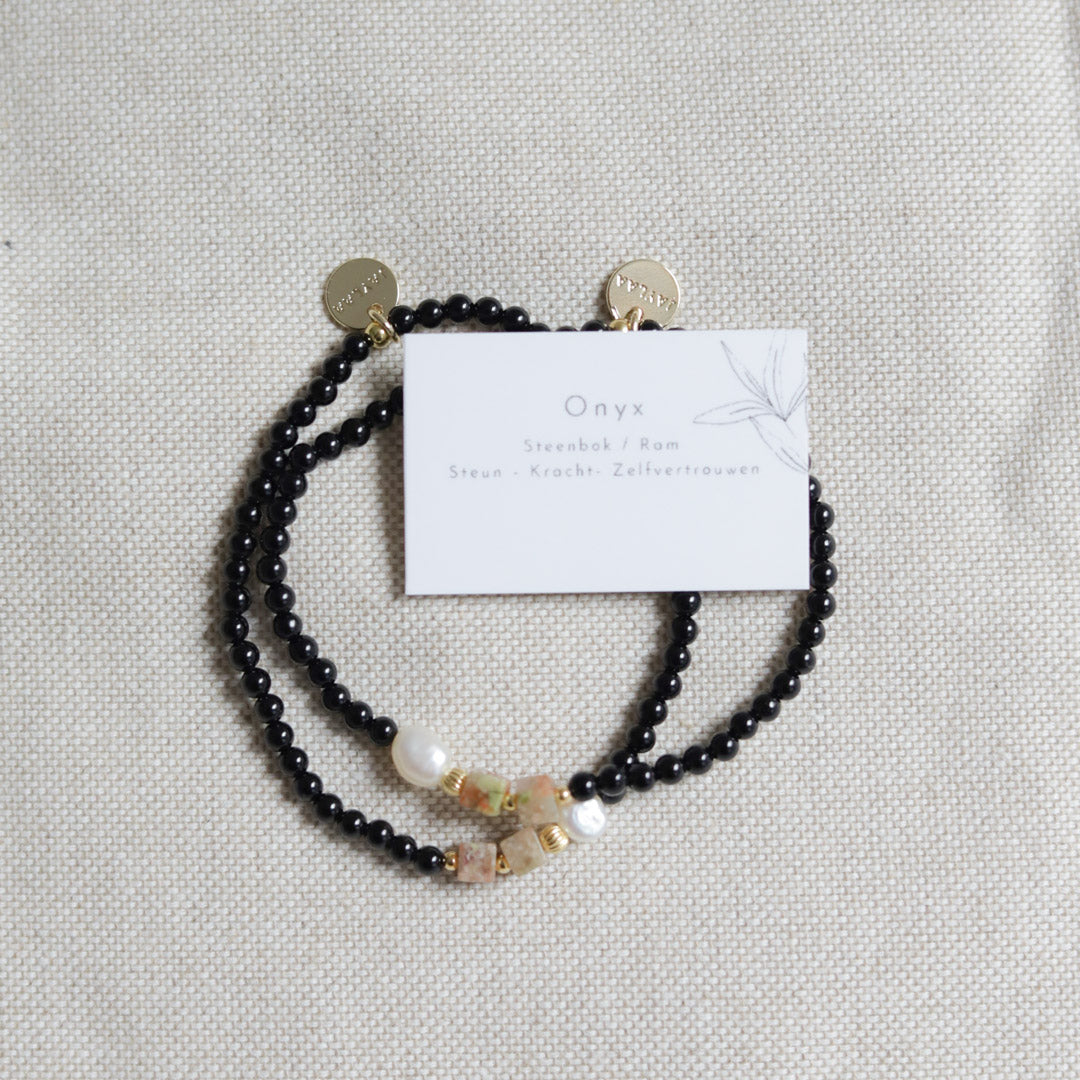 Deze stenen worden zorgvuldig gecombineerd met zilver of gold plated materialen, zodat je een stijlvolle en duurzame armband draagt.