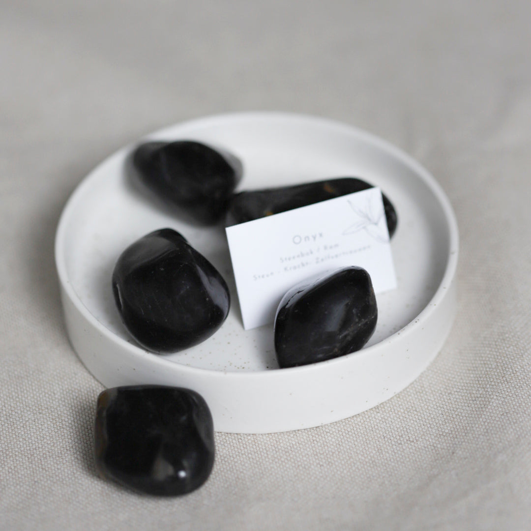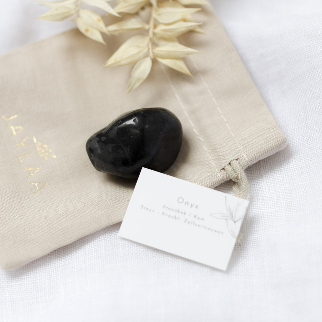 Onyx staat bekend als een beschermende steen die negatieve energie afweert en je helpt om stevig in je schoenen te staan. Het is een geweldige steen voor innerlijke kracht, doorzettingsvermogen en focus. Draag onyx bij je wanneer je een moeilijke periode doormaakt of een belangrijke beslissing moet nemen.